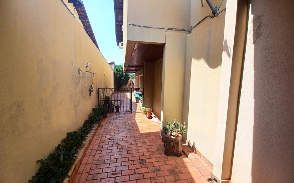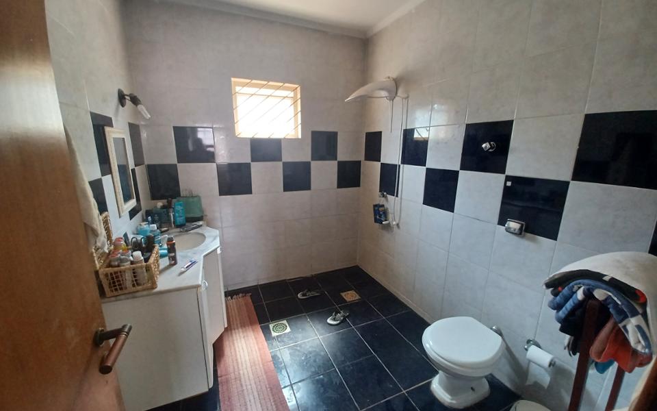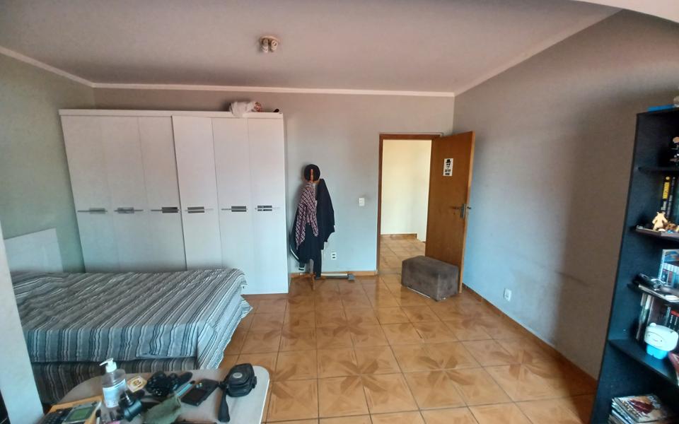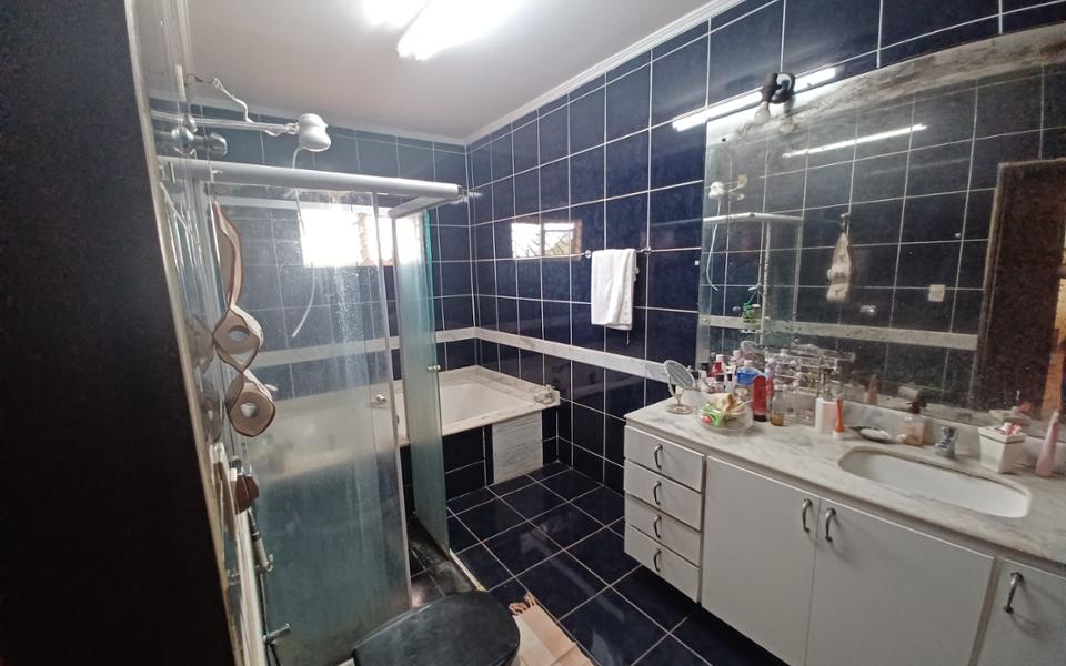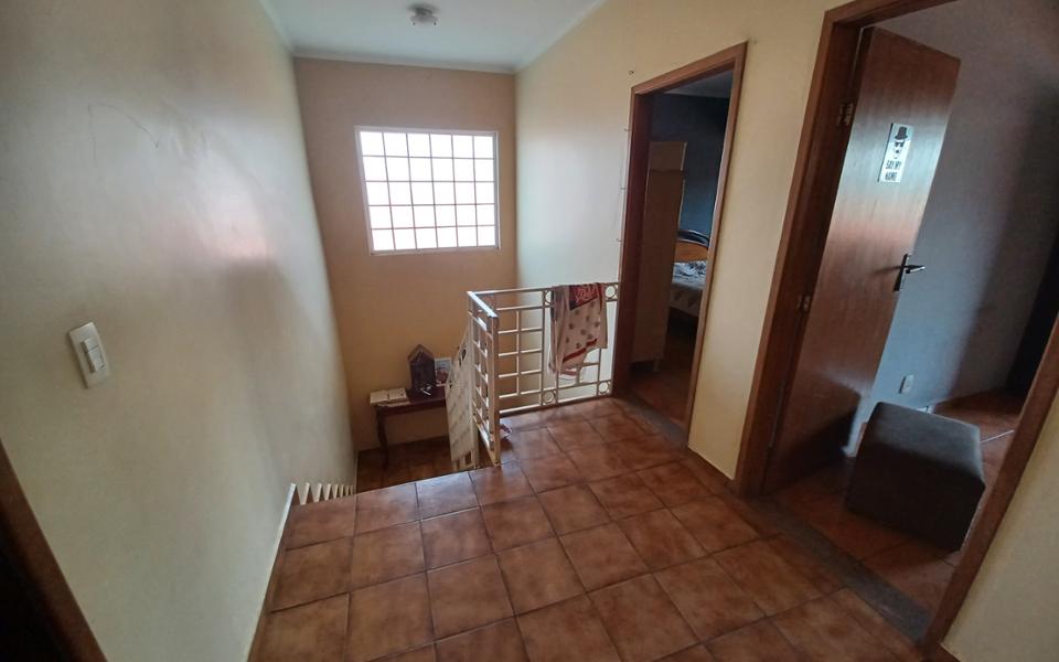 Parte Superior com 01 suíte com closet e banheira, 02 quartos, 01 banheiro social . Garagem para 2 carros cobertos e corredor lateral para 02 carros descobertos.